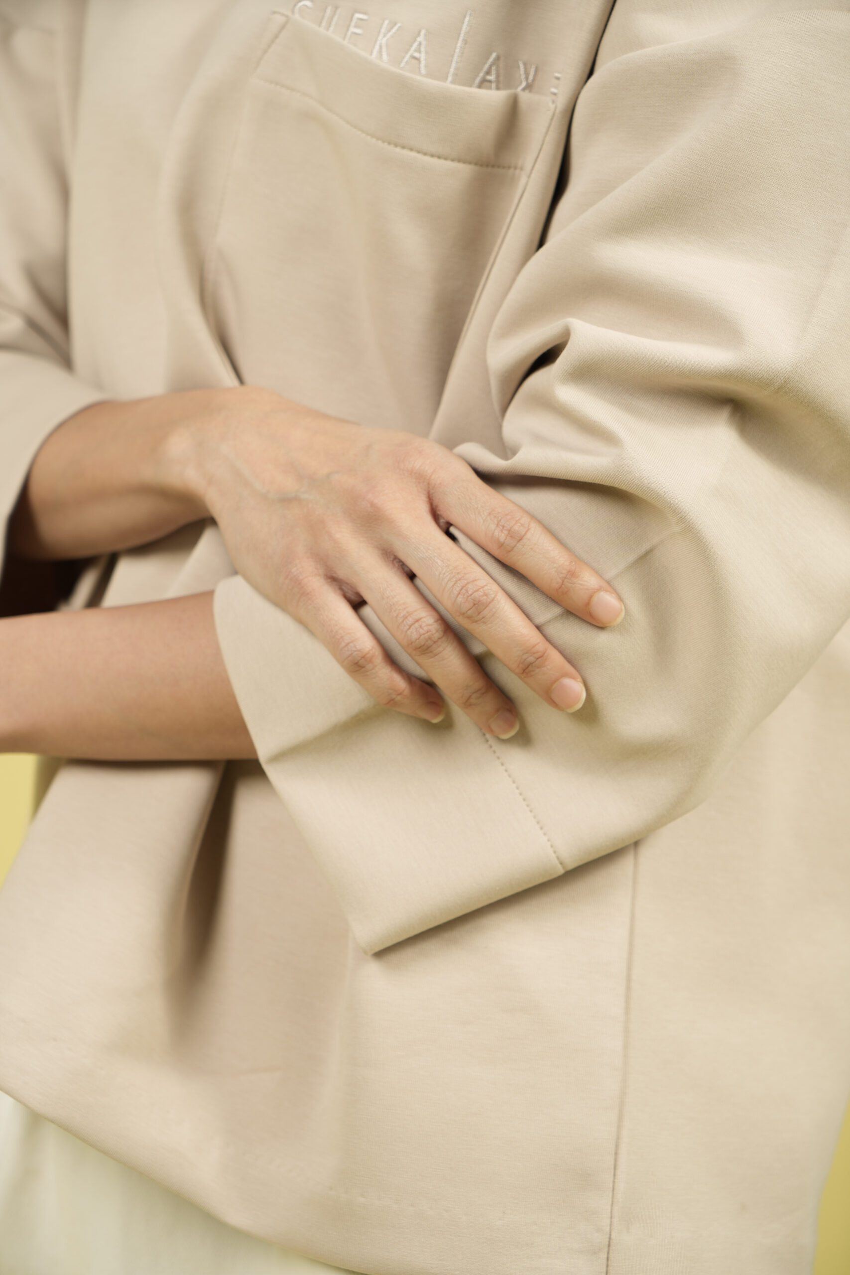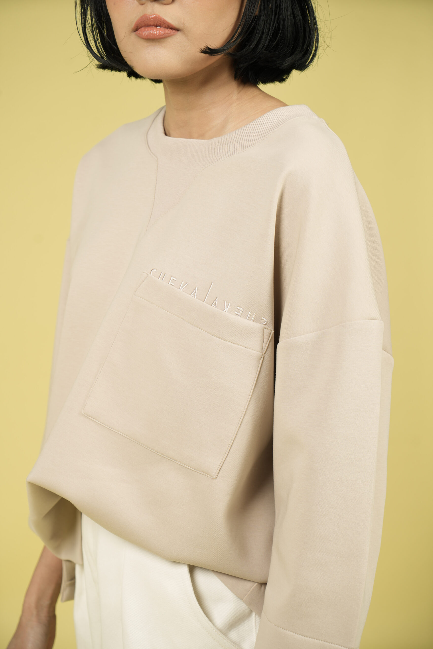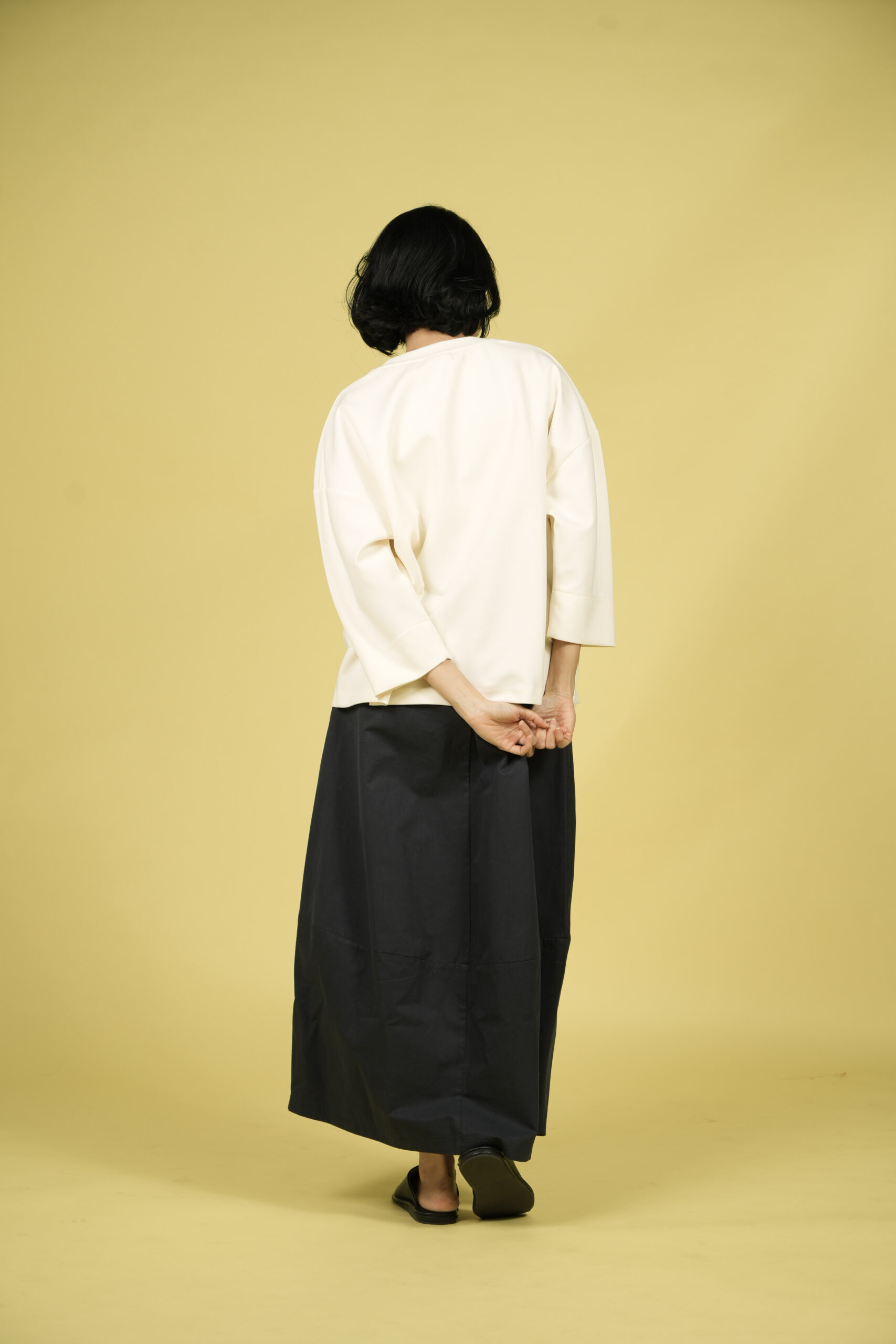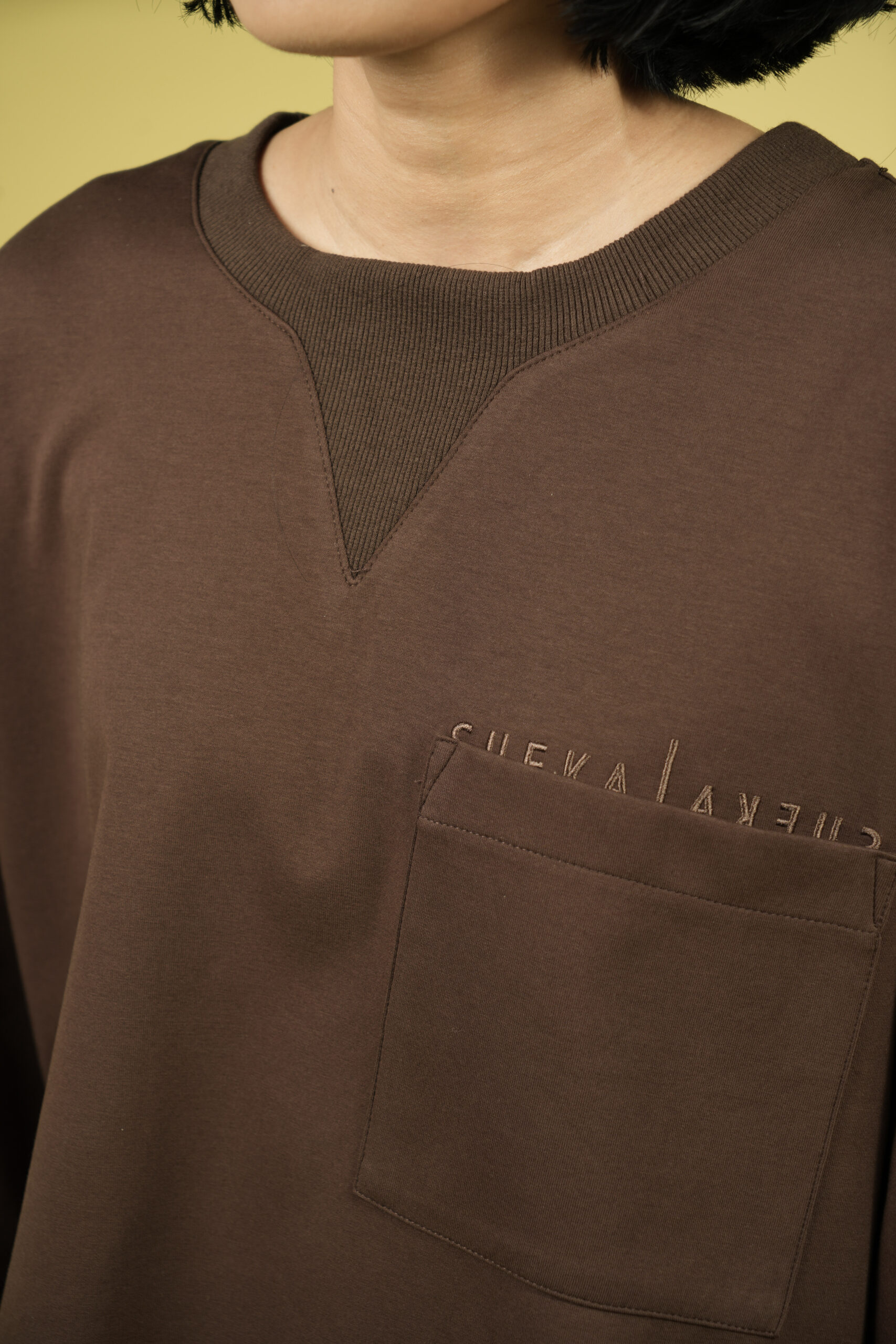 - features a knit square-ish neckline, a single patch pocket with “SUEKA SUEKA” embroidery